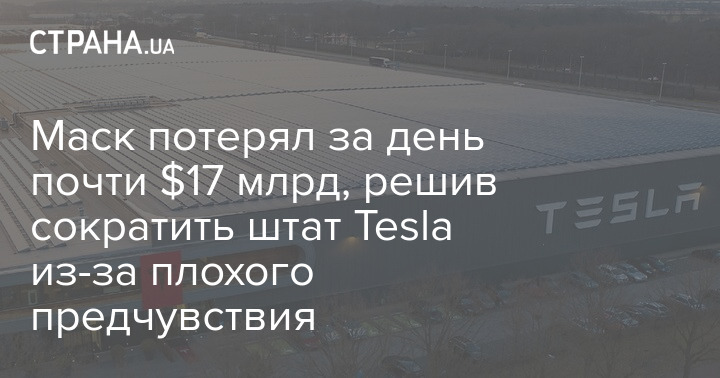 Корпоративное письмо о намерении предпринимателя Илона Маска сократить на 10% штат сотрудников в компании Tesla попало к журналистам. После этого Маск за день потерял $16,9 млрд.