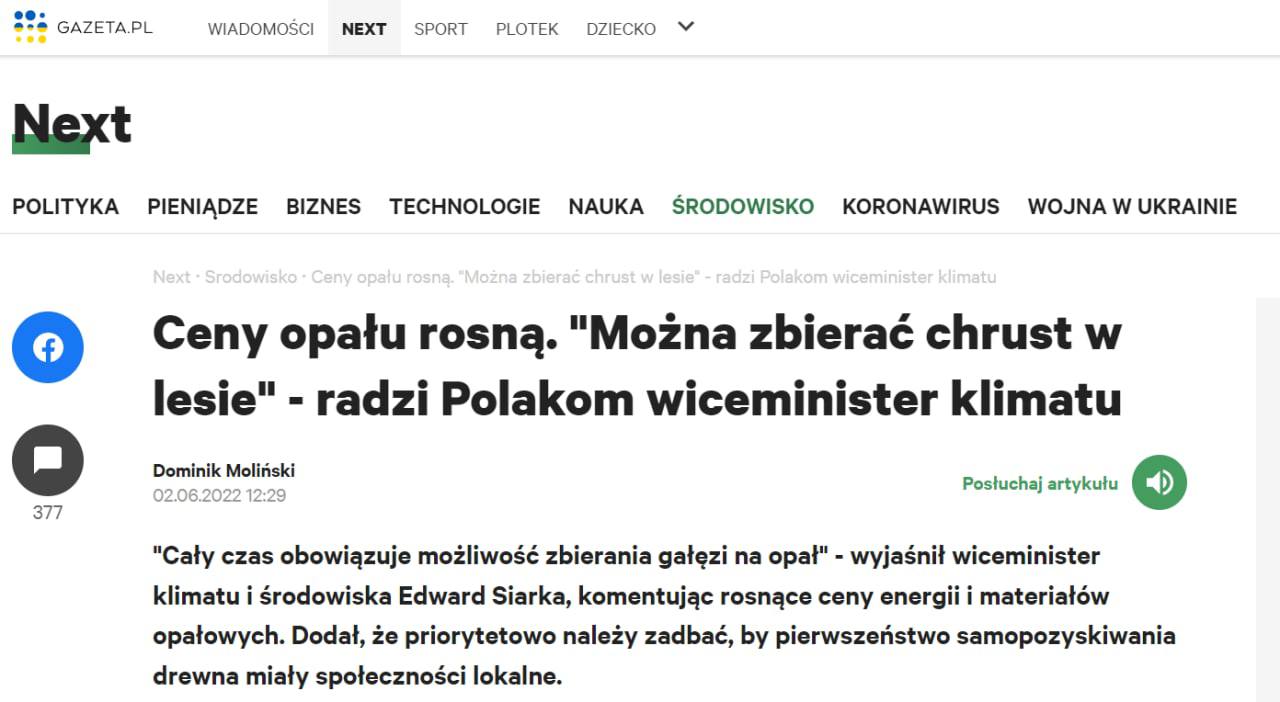 Польша пытается частично заместить дефицитный газ для отопления жилья обычными дровами. В частности, полякам разрешили собирать хворост для обогрева жилья на фоне роста цен на энергоносители.