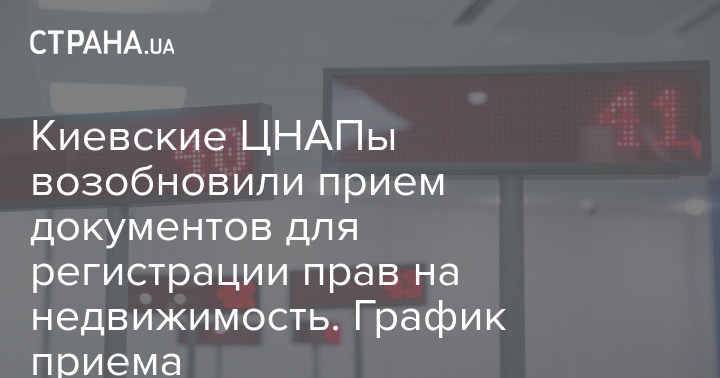 Киевские ЦНАПы возобновили прием документов для регистрации прав на недвижимость. График приема