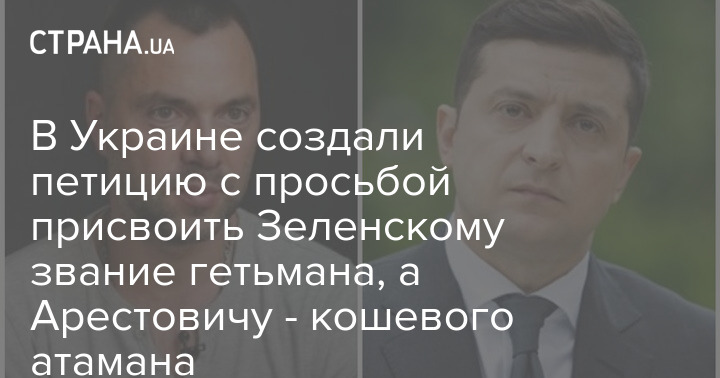 На сайте президента Украины появилась петиция, предлагающая присвоить главе государства Владимиру Зеленскому звание Гетьмана Украины, а советника главы ОП Алексея Арестовича сделать кошевым атаманом.