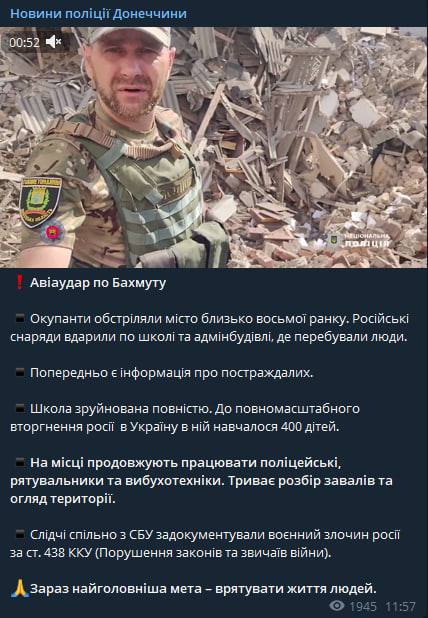 "Российские снаряды ударили по учебному заведению и админзданию, где находились люди. Школа полностью разрушена", - говорится в сообщении.