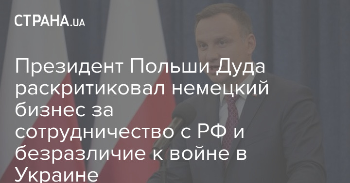 Анджей Дуда заявил, что немецкому бизнесу безразлична война в Украине. Фото: DW