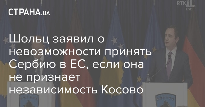 Сербия без признания независимости Косово (частично признанной республики, которую сербы считают территорией своей страны) не вступит в Евросоюз. Об этом заявил канцлер Германии Олаф Шольц во время встречи с косовским премьером Альбином Курти в эфире Радио и телевидения Косово.