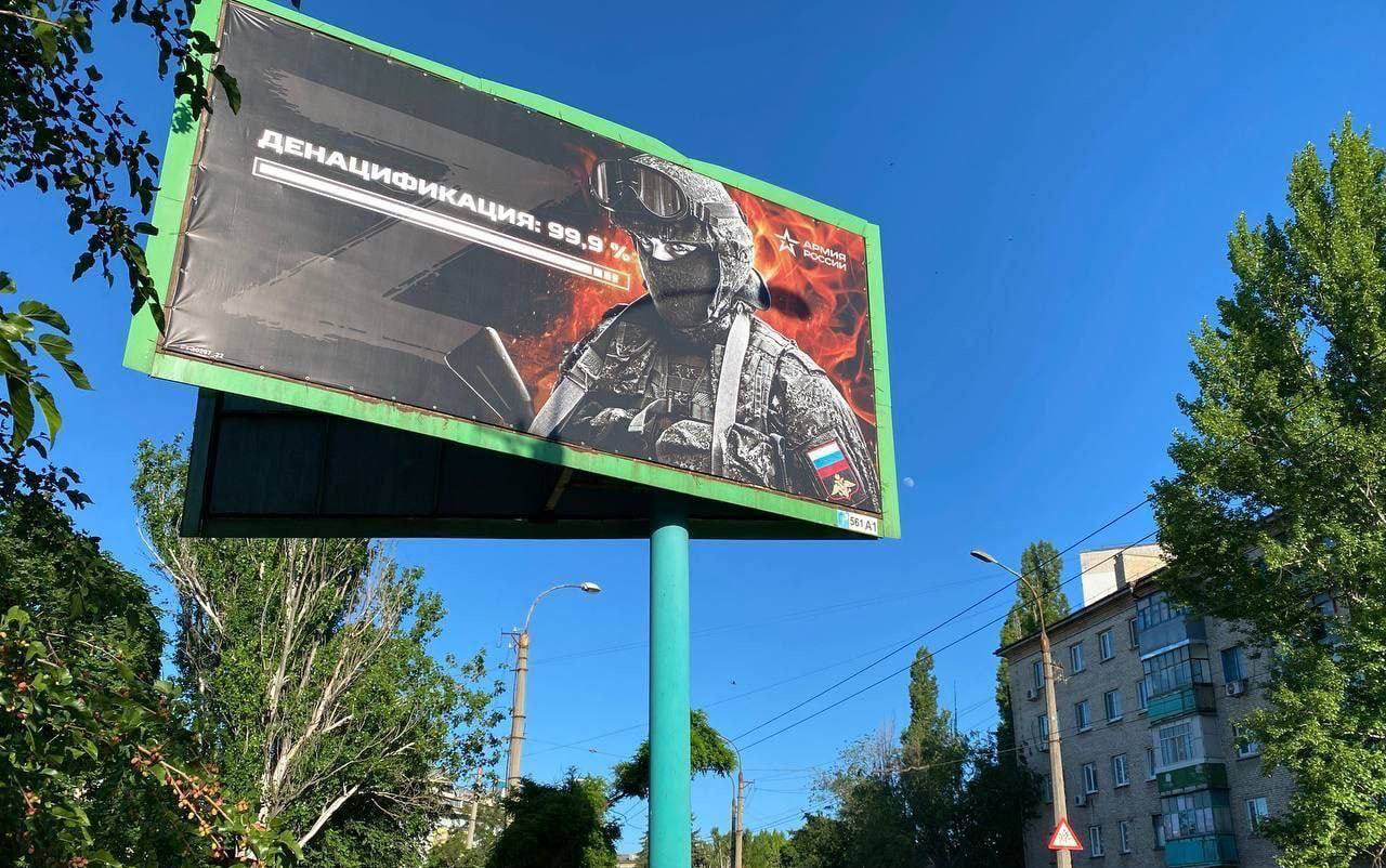 Так, например, в Луганске развесили плакаты с российскими военными, а в Мелитополе жителям раздают паспорта России.