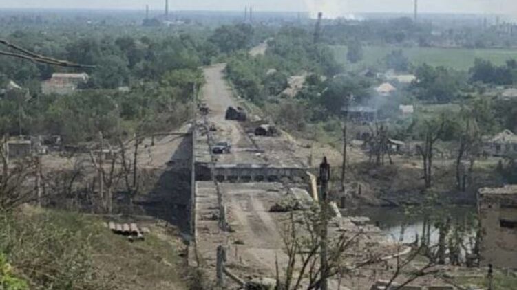 Появилось фото разрушенного Пролетарского моста в Северодонецке