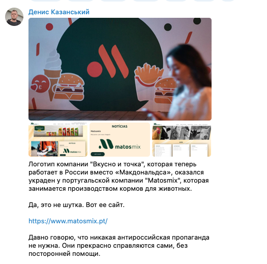 В соцсетях нашли сходство изображения с логотипом португальской компании Matosmix, которая занимается производством кормов для животных.