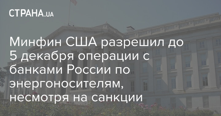 Минфин США разрешил до 5 декабря операции с банками России по энергоносителям, несмотря на санкции