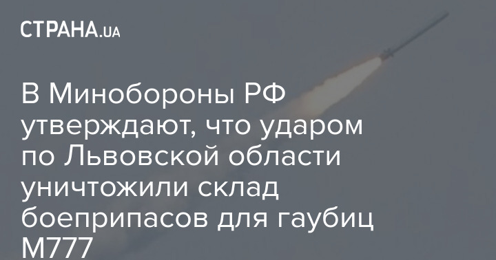 Российское минобороны заявляет, что в Золочеве Львовской области ракетами "Калибр" 14 июня был уничтожен склад боеприпасов для гаубиц M777, передают российские СМИ.