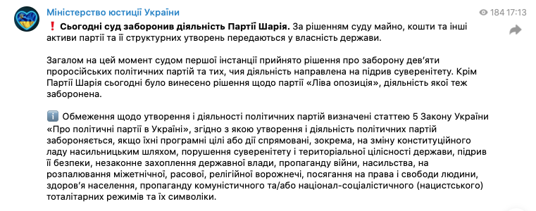 Напомним, что сегодня же этот суд также запретил Партию Шария.