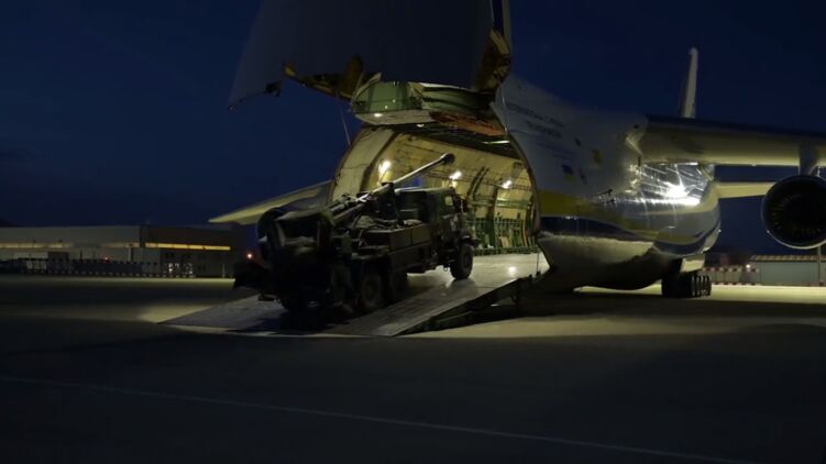 На видео осуществляется погрузка самоходной артустановки в военно-транспортный украинский самолет.
