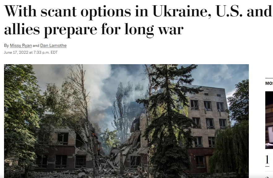 09.05 The Washington Post вышла со статьей о том, что Запад готовится к долгой войне в Украине.