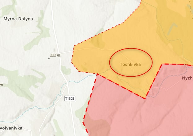 Пока захвата Тошковки Украина не подтвердила. Однако в вечерней сводке Генштаба ВСУ сообщается об атаке войск противника в направлении населенных пунктов Мирная Долина и Белая гора. Это между Тошковкой и Лисичанском (Белая гора находится прямо около  южных окраин Лисичанска). То есть можно предположить, что россияне наступают на них со стороны Тошковки.