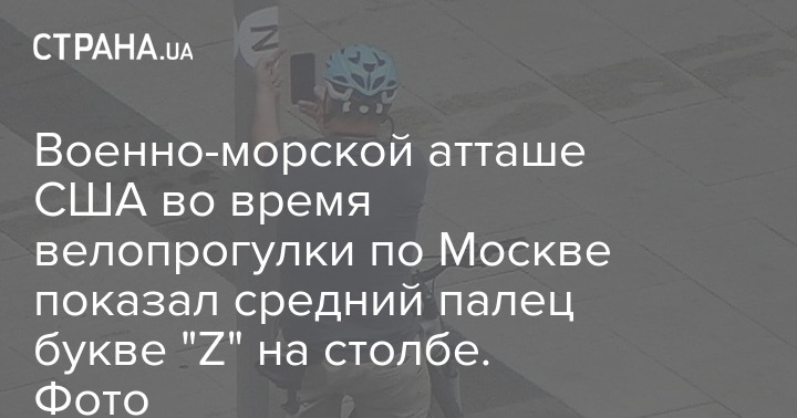 Военно-морской атташе посольства США в Москве Дэйл Сэмуэл, совершая велопрогулку по российской столице, остановился у столба с буквой "Z", и сделал фото, на котором показывает символу вторжения в Украину средний палец.