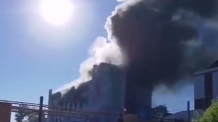 На кадрах видно, как в небо поднимаются огромные клубы черного дыма.