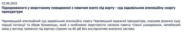 По информации "Страны", инцидент имел место еще 3 июня на берегу реки Сирет в селе Карпачи Черновицкой области. Изначально этим случаем никто не занимался, но из-за резонанса с видео скандал докатился до Офиса генпрокурора, и даже лично до Ирины Венедиктовой, которая потребовала наказать виновника.