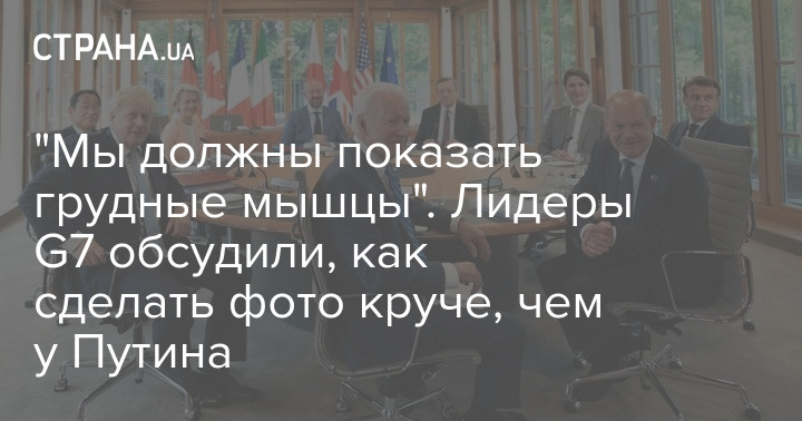 На встрече G7 в Мюнхене лидеры стран публично высмеяли Владимира Путина за его привычку сниматься в образе "мачо". Их ироничные высказывания процитировало AFP, чей фотограф сделал этот снимок и слышал разговоры участников саммита.
