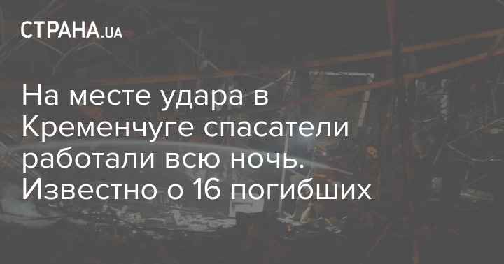 Во вторник, 28 июня, по состоянию на 01:18 было известно о 16 погибших и 59 пострадавших после удара российской ракеты по ТЦ "Амстор" в Кременчуге Полтавской области.