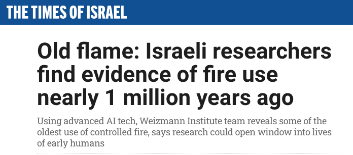 В Израиле ученые с помощью искусственного интеллекта нашли следы использования человеком огня не менее 800 тысяч лет назад. Хотя ранее считалось, что человек овладел огнем только 200 тысяч лет назад.