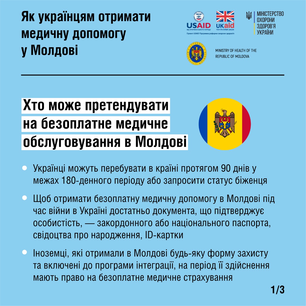 Для того, чтобы получить бесплатную медпомощь в Молдове во время войны в Украине достаточно документа, который удостоверяет личность, - заграничного или национального паспорта, свидетельства о рождении или ID-карты.