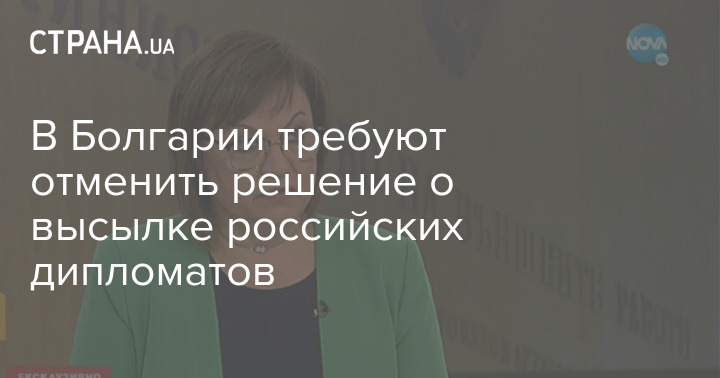 Вице-премьер Болгарии и лидер Болгарской социалистической партии Корнелия Нинова в обращении к парламенту потребовала принять решение, в соответствии с которым глава МИД страны Теодора Генчовска должна отменить вердикт о выдворении сотрудников российского посольства.