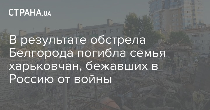 Российские СМИ пишут, что после ночного обстрела Белгорода, в котором РФ обвинила Украину, погибла семья из Харькова, состоявшая из трёх человек.