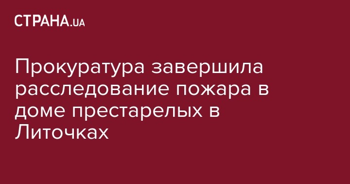 Прокуратура Киевской области завершила расследование пожара в частном доме престарелых в селе Литочки Броварского района Киевской области. В конце мая там в пожаре погибло 18 человек. Об этом говорится в сообщении пресс-службы ведомства.