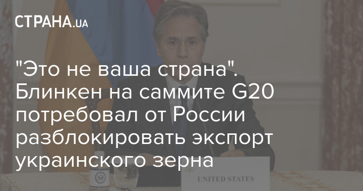 "Обращаюсь к нашим российским коллегам: Украина – не ваша страна. Ее зерно – не ваше зерно. Почему вы блокируете порты? Вы должны выпустить это зерно", - заявил Блинкен министру иностранных дел России Сергею Лаврову, с которым он отказался встречаться лично.
