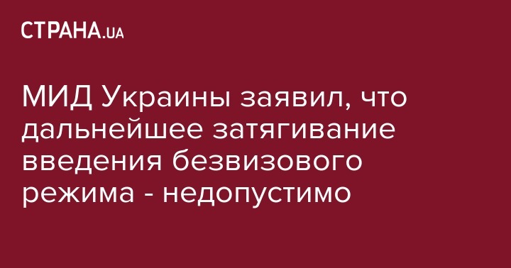 МИД Украины заявил, что дальнейшее затягивание введения безвизового режима - недопустимо