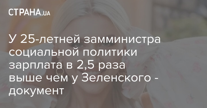 У 25-летней замминистра социальной политики зарплата в 2,5 раза выше чем у Зеленского - документ