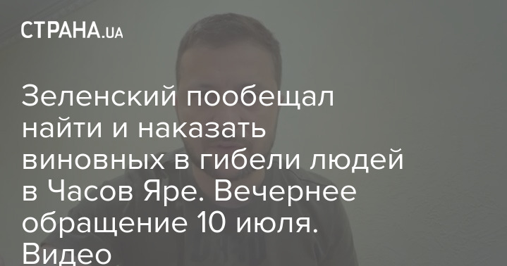 Зеленский пообещал найти и наказать виновных в гибели людей в Часов Яре. Вечернее обращение 10 июля. Видео