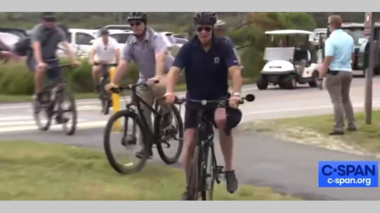 Байден снял крепежи для стоп с педалей велосипеда. Скриншот видео