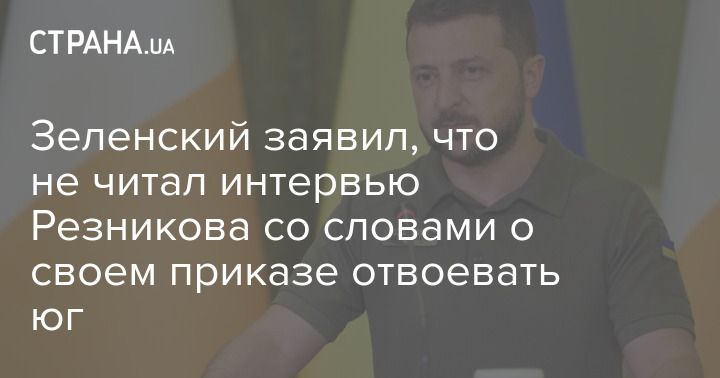 Зеленский заявил, что не читал интервью Резникова со словами о своем приказе отвоевать юг
