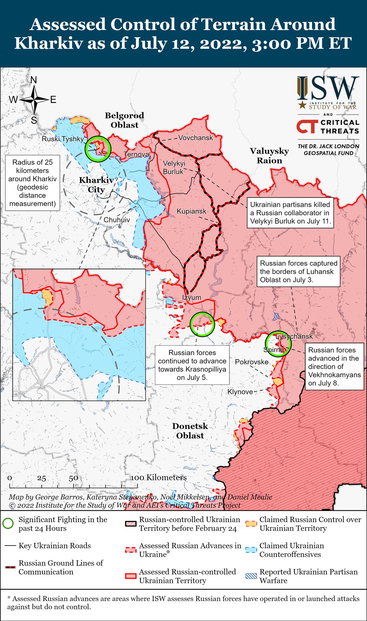Кроме того, ссылаясь на российские и украинские источники Институт сообщает, что 10 июля в результате украинских ударов в Херсоне погибло несколько российских офицеров.