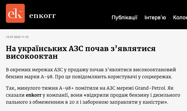 В частности, сеть Grand-Petrol сообщила, что открыла продажу топлива А-98+ с ограничением в 20 л и запретом заправлять в канистры по цене 79,99 грн/л, передает Enkorr.