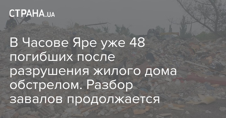 В Часов Яре спасатели достали из-под завалов разрушенного обстрелом жилого дома тело еще одного погибшего. Таким образом общее количество погибших достигло 48 человек.
