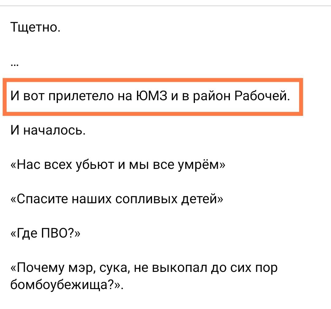 Ранее сообщалось, что удар наносился по промышленному предприятию (предположительно, в районе Южмаша).
