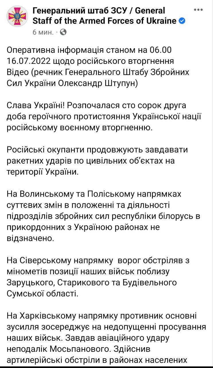 В субботу, 16 июля, в Украине идет уже 143-й день войны с РФ.