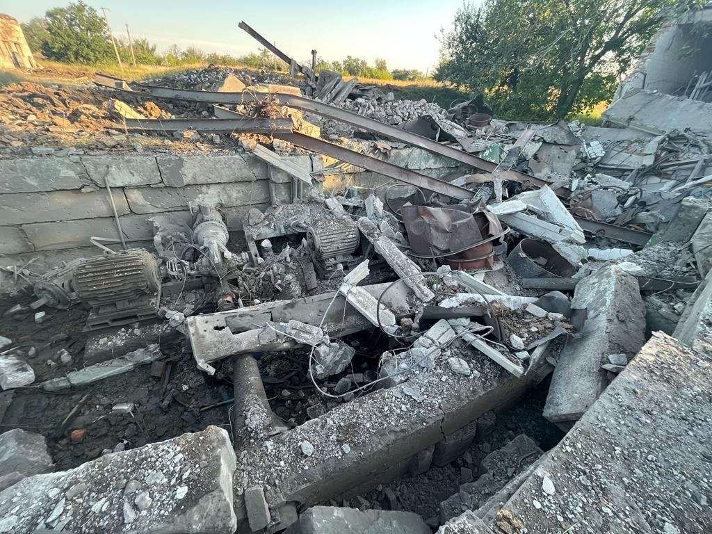 • удар был по промышленному предприятию, по состоянию на полночь там бушевал пожар, его тушили 46 человек.