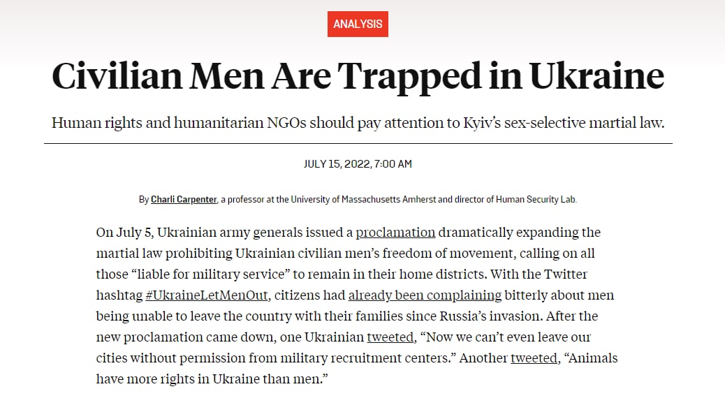 09.11 Издание Foreign Policy (США) вышло с критикой мобилизации в Украине - в части запрета на выезд мужчин.