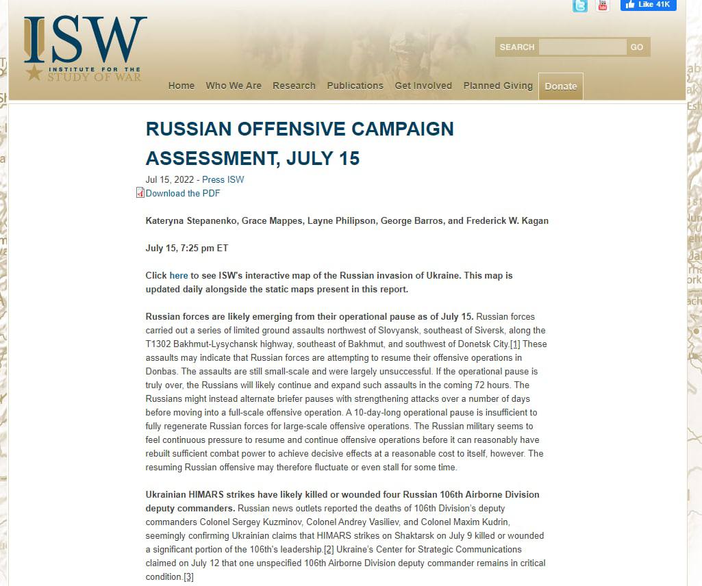 По оценке британской разведки, после отступления из Лисичанска украинский войска улучшили свои оборонительные возможности, сократив и выпрямив линию фронта.