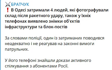 После сегодняшнего обстрела склада в Одессе задержали четырех человек, которые снимали пожар на смартфоны.