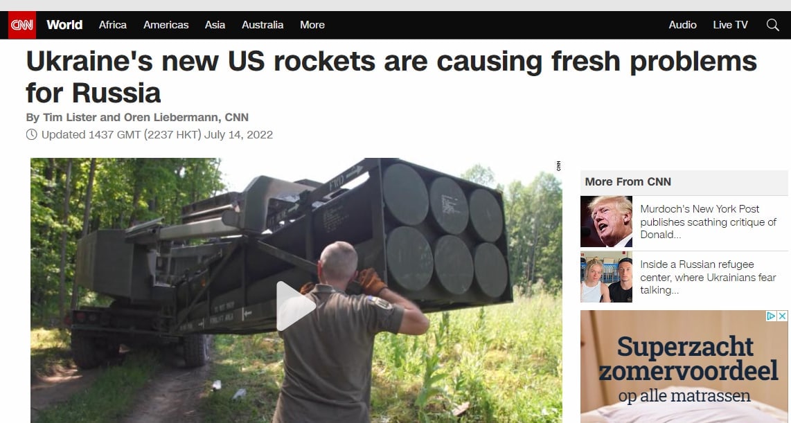 Ранее The New York Times писало, что успешными ударами из установок HIMARS Украина пытается убедить Запад нарастить военную поддержку.