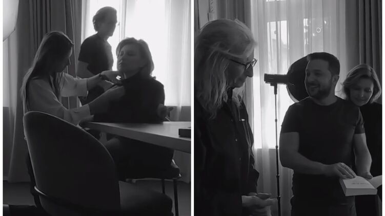 На странице американского Vogue в Instagram опубликовали бекстейдж со съемки фотосессии Елены и Владимира Зеленских в Киеве. Портреты были сделаны знаменитым портретистом Энни Лейбовиц, которая снимает мировых звезд для модного глянца.