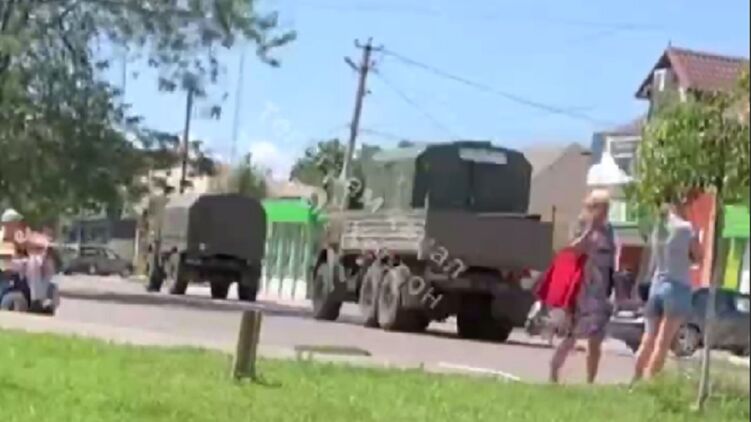 В захваченном Геническе с утра фиксируют колонны российской техники. Местные телеграм-каналы сообщают о колонне в 25 машин, чего ранее не наблюдалось.