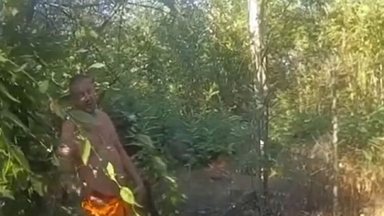 Когда пьяного мужчину остановили патрульные, он достал из автомобиля автомат и начал им угрожать. Скриншот из видео