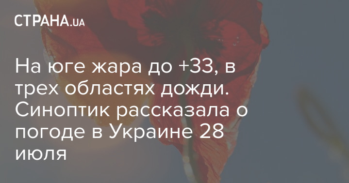 В пятницу, 29 июля, в Украине ожидается по-настоящему летняя погода. В южных регионах столбики термометров покажут +30...+33 градусов. Жарко будет в центральных и юго-западных областях.