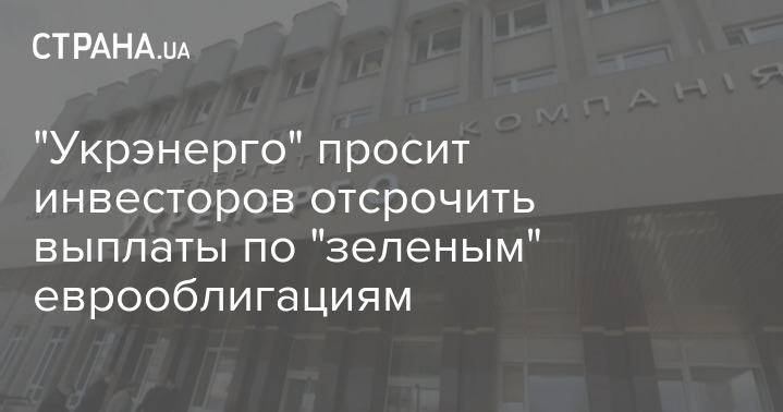 "Укрэнерго" просит инвесторов отсрочить выплаты по "зеленым" еврооблигациям