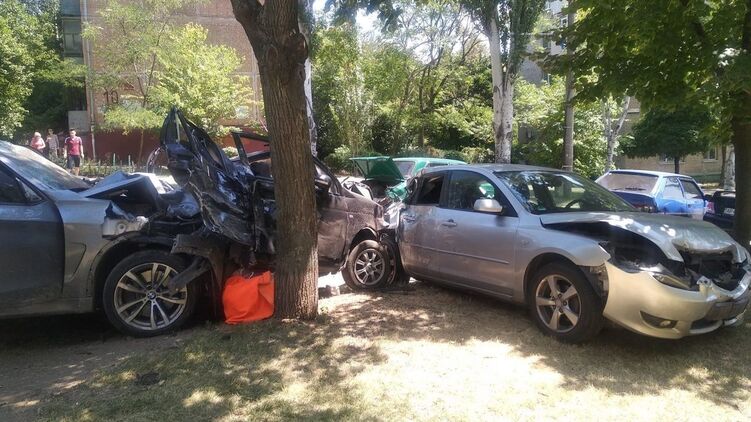 В Запорожье пьяный водитель протаранил несколько авто и вылетел на газон, есть погибший. Фото