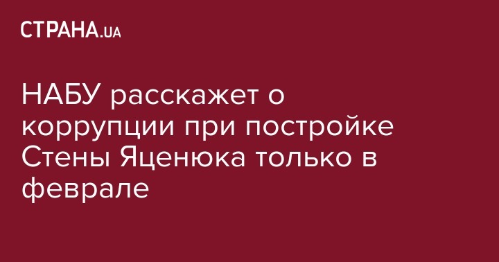"Первые итоги расследования по проекту #Стена #НАБУ обнародует в феврале", - говорится в сообщении НАБУ в Twitter в пятницу.