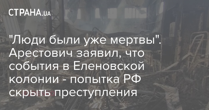 События в колонии Еленовки с украинскими пленными  - попытка РФ скрыть следы преступлений. Военные на момент начала пожара были уже мертвы. Об этом написал советник главы Офиса президента Украины Алексей Арестович у себя в Twitter.